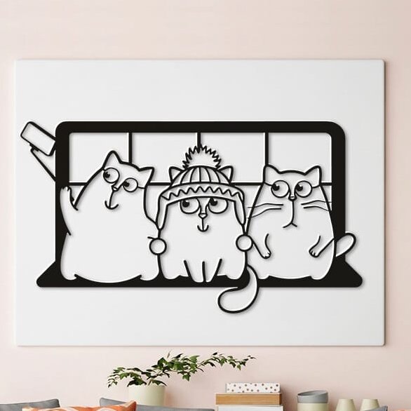 Intra απο ξύλο plywood 3mm-4mm πάχος – Αστείες γάτες που βγάζουν Selfie Wall Art DXF 12×15 cm INTRAVECTRY-MY552326