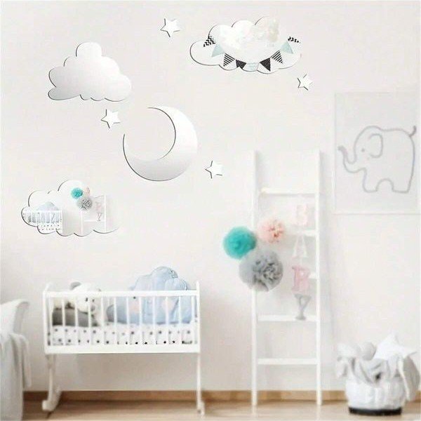 Intra απο ξύλο plywood 3mm-4mm πάχος – Αυτοκόλλητα τοίχου με αστέρια φεγγαριού και σύννεφα καθρέφτη ακρυλικό Δίασταση 20×20 cm Intraeaxys-ro66dw2o