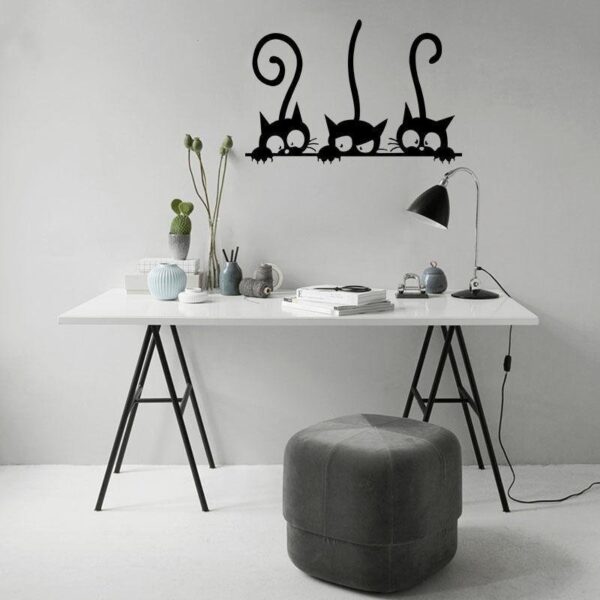 Intra απο ξύλο plywood 3mm-4mm πάχος – Αυτοκόλλητο τοίχου με τρεις μαύρες γάτες Δίασταση 30×30 cm Intraeaxys-eo24y861