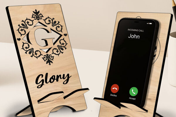Intra απο ξύλο plywood 3mm-4mm πάχος – Βάση τηλεφώνου Letter G Monogram Stand Δίασταση 20×20 cm INTRAFABR-122808824