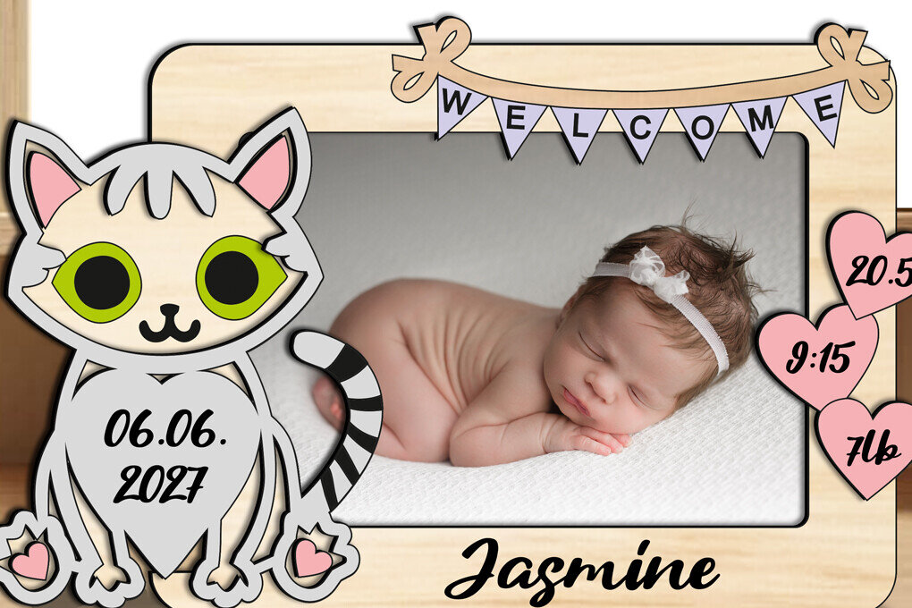 Intra απο ξύλο plywood 3mm-4mm πάχος Γάτα μωρό δώρο Πλαίσιο Νεογέννητο Δίασταση 20×30 cm INTRAFABR-123794812