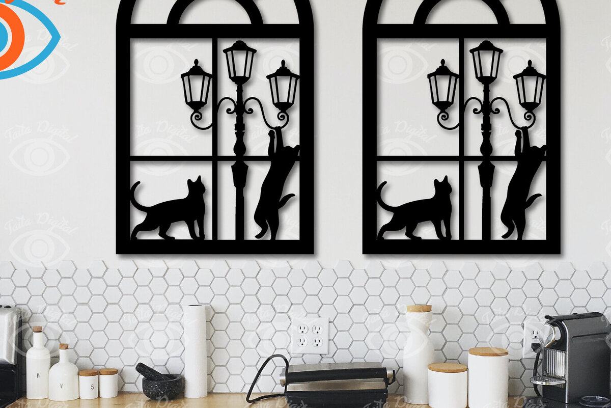 Intra απο ξύλο plywood 3mm-4mm πάχος Γάτα σε παράθυρο 3d τυπωμένη διακόσμηση τοίχου Δίασταση 40×40 cm INTRAFABR-112921796