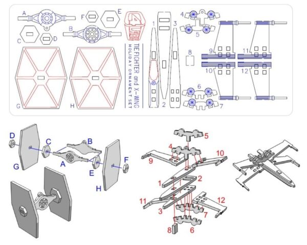 Intra απο ξύλο plywood 3mm-4mm πάχος – Γιορτινά στολίδια Tie Fighter X-Wing Δίασταση 10×10 cm Intraeaxys-eo4qpj87