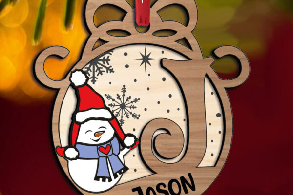 Intra απο ξύλο plywood 3mm-4mm πάχος – Γιορτινό γράμμα Χιονάνθρωπος J Christmas Δίασταση 6×6 cm INTRAFABR-110525415