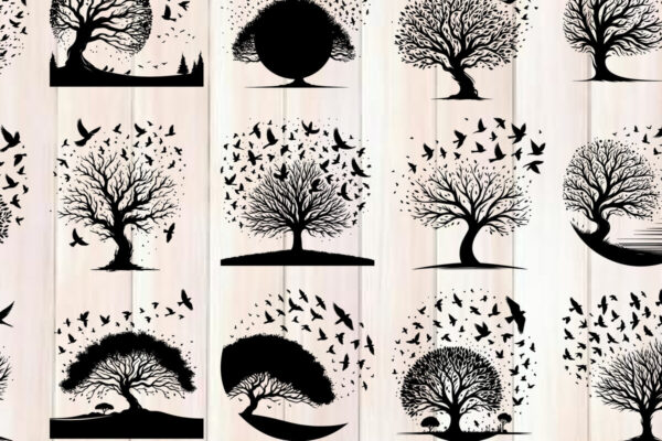Intra απο ξύλο plywood 3mm-4mm πάχος – Δέντρο και πουλί σιλουέτα διάνυσμα δέσμη Δίασταση 20×20 cm INTRAFABR-118096681
