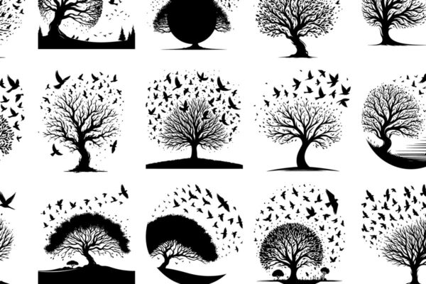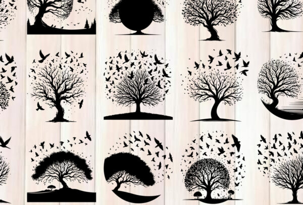 Intra απο ξύλο plywood 3mm-4mm πάχος – Δέντρο και πουλί σιλουέτα διάνυσμα δέσμη Δίασταση 20×20 cm INTRAFABR-118096482