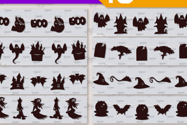 Intra απο ξύλο plywood 3mm-4mm πάχος – Δέσμη κοπής με λέιζερ Halloween Garlands Δίασταση 15×15 cm INTRAFABR-106070025