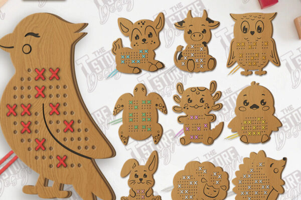 Intra απο ξύλο plywood Χρώμα wenge 3mm-4mm πάχος – Δέσμη κοπής με λέιζερ Cross Stitch Animals Δίασταση 15×15 cm INTRAFABR-95127892