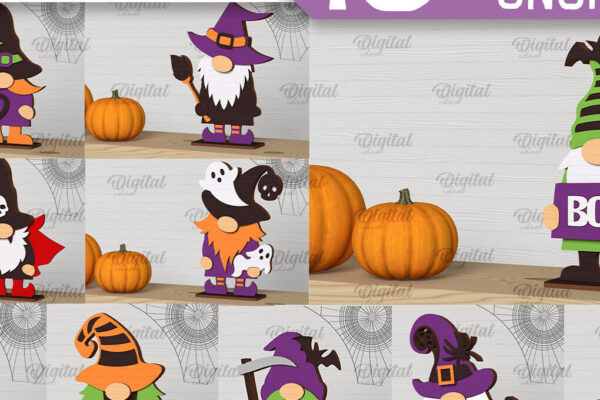 Intra απο ξύλο plywood Χρώμα wenge 3mm-4mm πάχος – Δέσμη κοπής με λέιζερ Halloween Gnomes Δίασταση 15×15 cm INTRAFABR-119926615