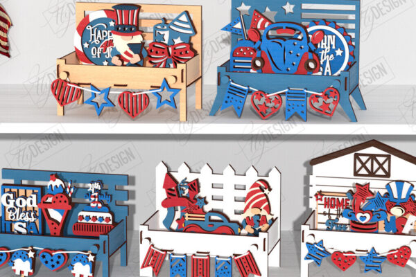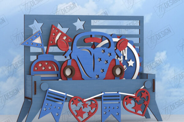 Intra απο ξύλο plywood 3mm-4mm πάχος Δέσμη κοπής με λέιζερ σε επίπεδα 4 Ιουλίου Δίασταση 15×15 cm INTRAFABR-122081163