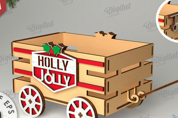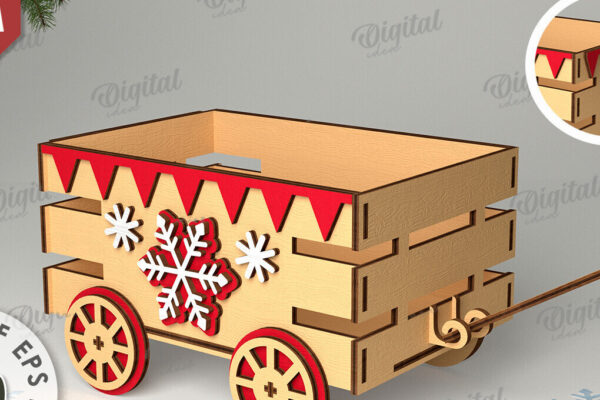 Intra απο ξύλο plywood 3mm-4mm πάχος Δέσμη κοπής με λέιζερ με τρισδιάστατα χριστουγεννιάτικα βαγόνια Δίασταση 15×15 cm INTRAFABR-109867032