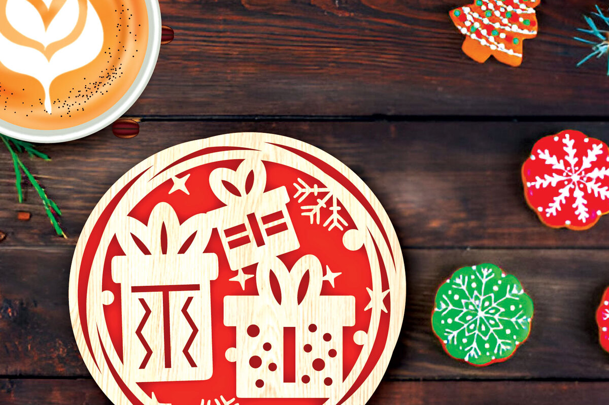 Intra απο ξύλο plywood 3mm-4mm πάχος Δέσμη κοπής με λέιζερ σουβέρ Χριστουγέννων Δίασταση 15×15 cm INTRAFABR-107978408