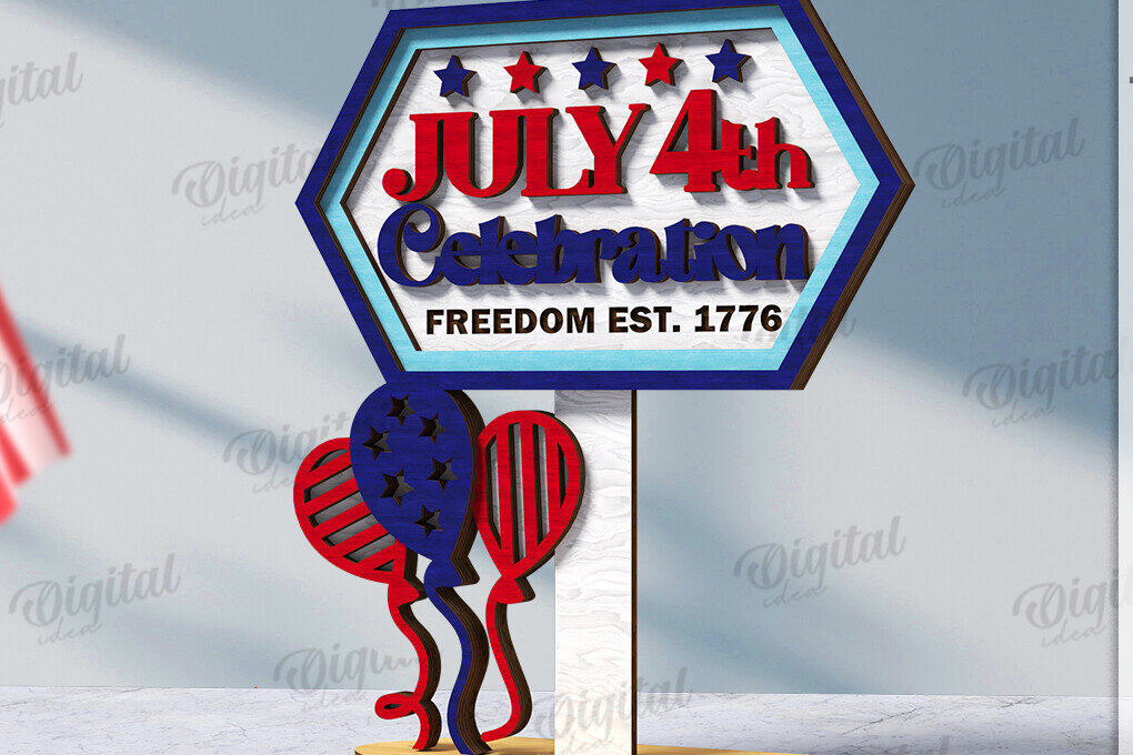 Intra απο ξύλο plywood 3mm-4mm πάχος Δέσμη κοπής με λέιζερ 3D 4th of July Stands Δίασταση 30×20 cm INTRAFABR-120970230