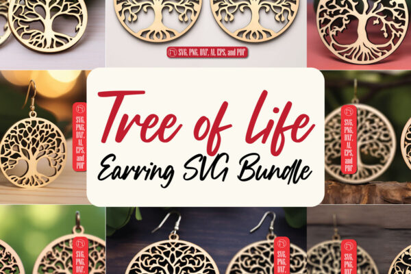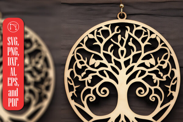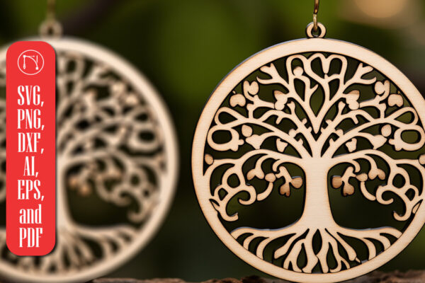 Intra απο ξύλο plywood 3mm-4mm πάχος – Δέσμη κοπής με λέιζερ σκουλαρίκι Tree of Life Δίασταση 5×5 cm INTRAFABR-90349659