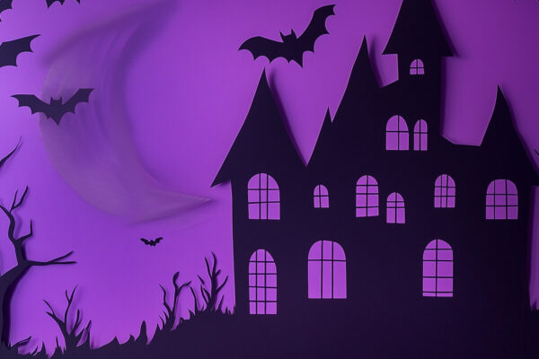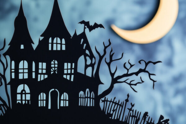 Intra απο ξύλο plywood 3mm-4mm πάχος – Δέσμη με κομμένο χαρτί Spooky Haunted House Δίασταση 20×20 cm INTRAFABR-106609283