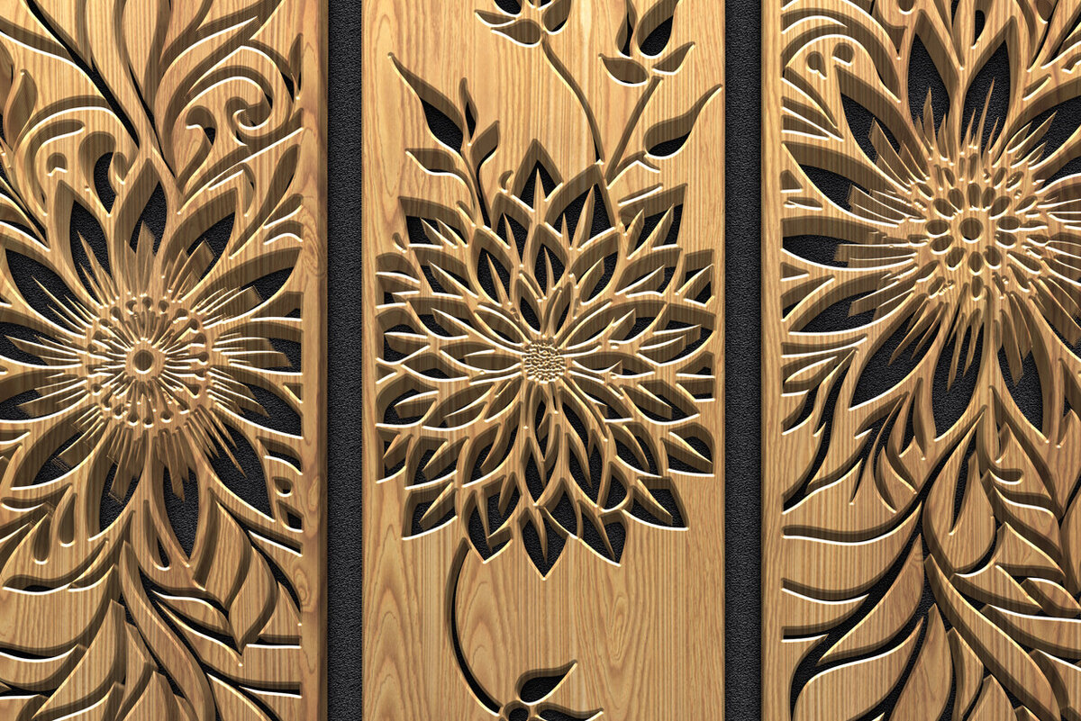 Intra απο ξύλο plywood 3mm-4mm πάχος Δέσμη πάνελ κοπής βοτανικού δέντρου και λουλουδιών Δίασταση 3600×5400 cm INTRAFABR-122443817