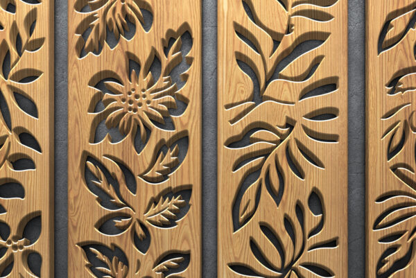 Intra απο ξύλο plywood Χρώμα wenge 3mm-4mm πάχος – Δέσμη πάνελ λουλουδιών με λέιζερ Δίασταση 3200×7200 cm INTRAFABR-97570152