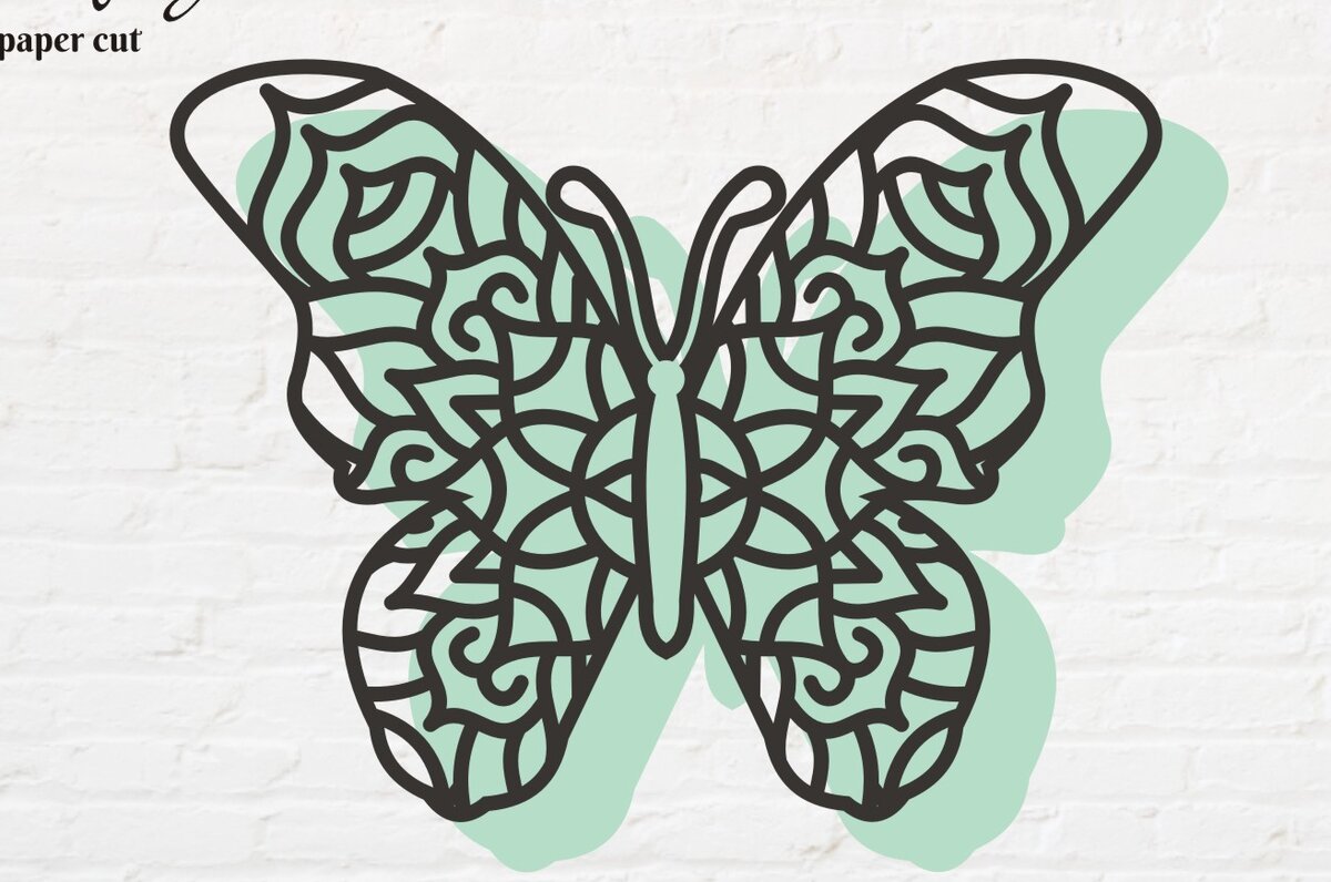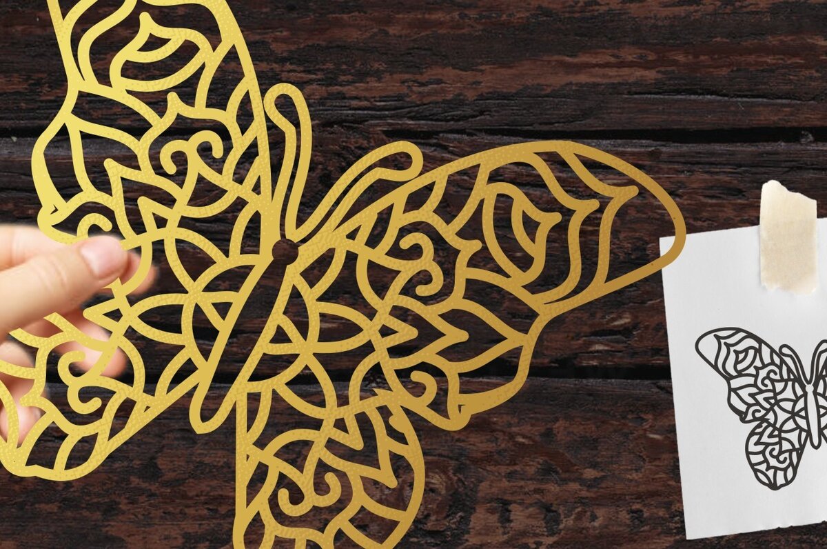 Intra απο ξύλο plywood 3mm-4mm πάχος Διάνυσμα πεταλούδας Mandala 3D με στρώσεις Δίασταση 30×30 cm INTRAFABR-15085519