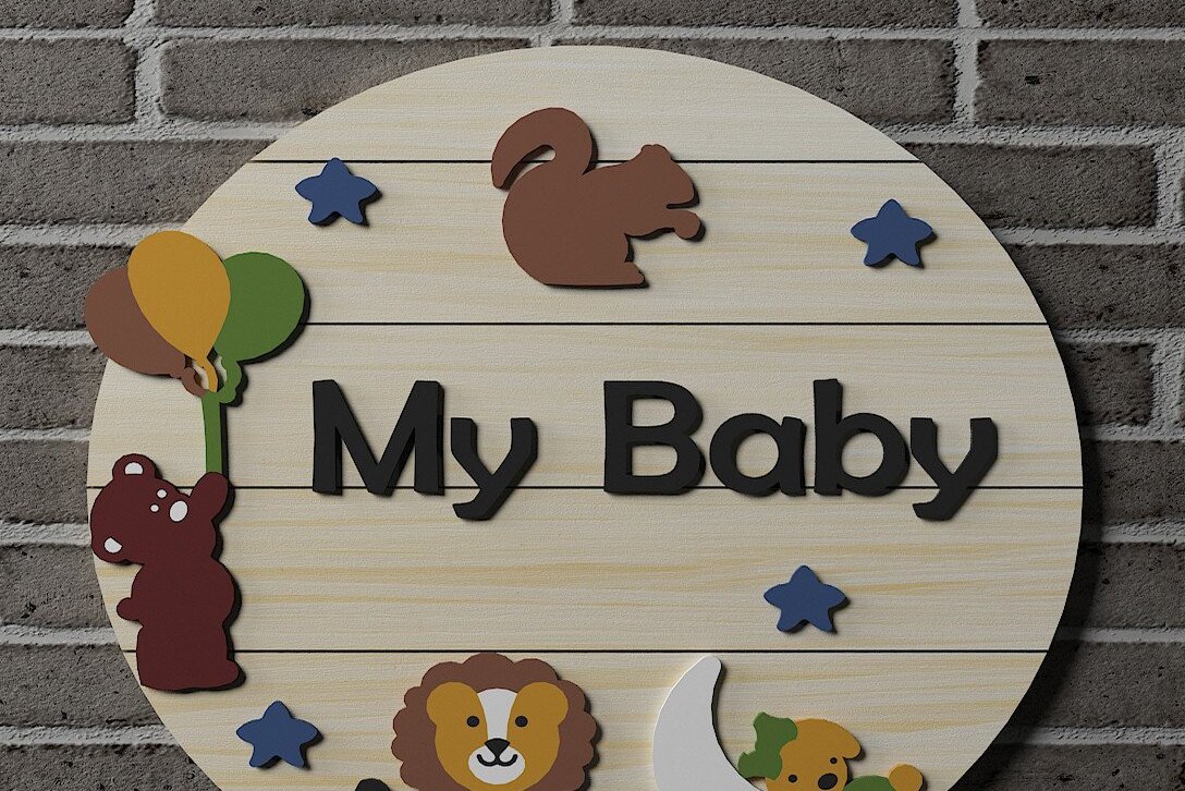 Intra απο ξύλο plywood 3mm-4mm πάχος Διακοσμήσεις με κρεμάστρα τοίχου στρογγυλές για μωρό Δίασταση 30×20 cm INTRAFABR-46324665