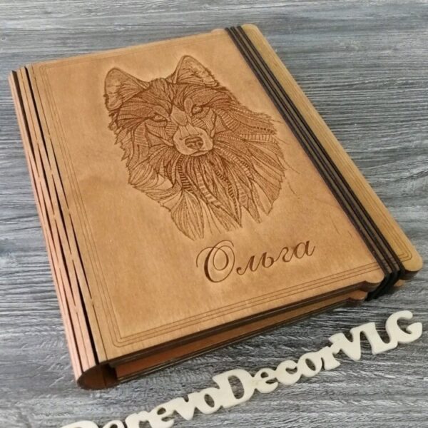Intra απο ξύλο plywood 3mm-4mm πάχος – Διακοσμητικό κάλυμμα σημειωματάριου με χαραγμένο Wolf Δίασταση 30×30 cm Intraeaxys-eoxlyygo
