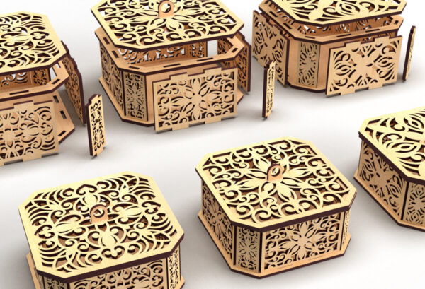 Intra απο ξύλο plywood 3mm-4mm πάχος – Διακοσμητικό κουτί δώρου με εξάγωνο κομμένο λέιζερ 6 Δίασταση 15×15 cm INTRAFABR-82945141