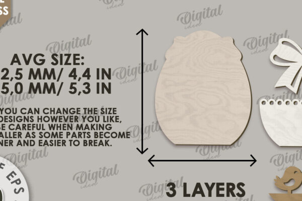 Διακοσμητικό πασχαλινό αυγό κοπής με λέιζερ. 3D αυγό Πρόκειται για ψηφιακό σχεδίου, ιδανικό για κοπή με ή plotter. Κατασκευασμένο απο Ξύλο από plywood [3mm ή 4mm], κομμένο με ακρίβεια στην βιοτεχνία Intrahome . Το φυσικό ξύλο προσφέρει μια κομψή, αυθεντική υφή και μπορεί εύκολα να βαφτεί ή να διακοσμηθεί σύμφωνα με το προσωπικό σας γούστο. Ελληνική παραγωγή – Κατασκευάζεται στην Ελλάδα με προσοχή στη λεπτομέρεια και υψηλές προδιαγραφές ποιότητας. ✔️ Υλικό: Plywood υψηλής ποιότητας ✔️ Διατίθεται σε πάχος 3mm ή 4mm ✔️ Ελαφρύ, ανθεκτικό και εύκολο στη χρήση ✔️ Ιδανικό για βάψιμο, χάραξη, κόλληση και χειροτεχνίες ✔️ Κατάλληλο για μπομπονιέρες, διακόσμηση, δώρα και DIY projects ✅ Εγγύηση 2 ετών – Σε περίπτωση σπασίματος, η αντικατάσταση γίνεται άμεσα, χάρη στην τοπική ελληνική παραγωγή μας. Ιδανικό για δημιουργικούς ανθρώπους που αγαπούν το DIY. Μπορεί να γίνει ξεχωριστό δώρο με προσωπικό χαρακτήρα. Φέρνει “χειροποίητη” αισθητική στη διακόσμηση. -files- Ελληνική χειροποίητη παραγωγή → στηρίζετε τοπικούς δημιουργούς. Κάθε κομμάτι έχει τη δική του φυσική ξύλινη υφή (μοναδικότητα). Δυνατότητα ειδικής παραγγελίας (άλλα μεγέθη / σχήματα). Άμεση ανταπόκριση & υποστήριξη. Εγγύηση αντικατάστασης (ήδη το έχεις). Μπορεί να μετατραπεί σε προσωποποιημένο αντικείμενο με χάραξη ή χρώμα. -files– Μη τοξικό υλικό → ασφαλές για παιδιά (με επίβλεψη). Ελαφρύ και εύκολο στη μεταφορά. Συσκευάζεται με προστασία για να φτάνει πάντα άθικτο. -files–files- Ιδανικό για event planners, καταστήματα ειδών δώρου, κατασκευαστές . Διατίθεται σε χονδρική με ειδικές τιμές & εκπτώσεις σε ποσότητα. Ανοιχτές Αποχρώσεις
