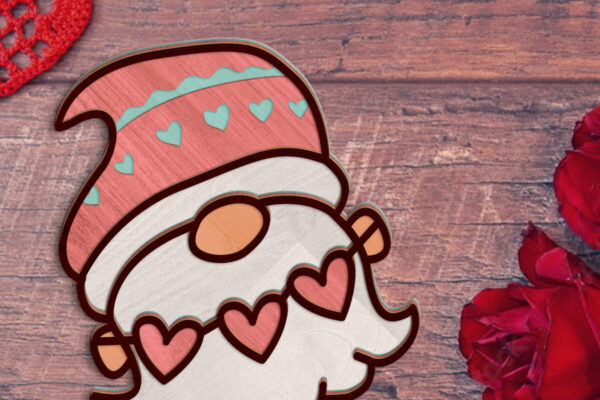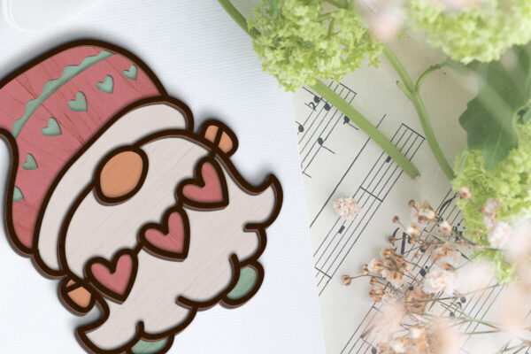 Intra απο ξύλο plywood Χρώμα wenge 3mm-4mm πάχος – Διακοσμητικό πρότυπο Gnome με καρδιές Δίασταση 7×6 cm INTRAFABR-119137412