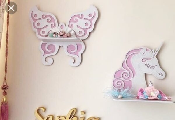 Intra απο ξύλο plywood 3mm-4mm πάχος – Διακοσμητικό ράφι πεταλούδας και μονόκερου Δίασταση 30×30 cm Intraeaxys-91jkdz4o