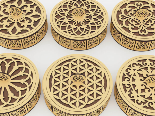 Intra απο ξύλο plywood 3mm-4mm πάχος – Διακοσμητικό στρογγυλό κουτί Αρχεία Cut Laser Δίασταση 180×180 cm INTRAFABR-72392600