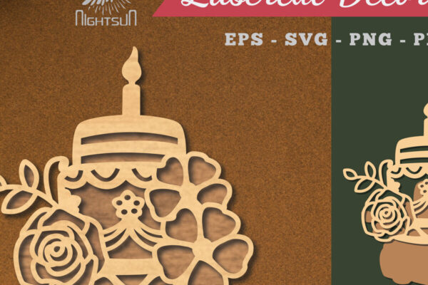 Intra απο ξύλο plywood 3mm-4mm πάχος – Διακόσμηση με κομμένα λέιζερ τούρτα λουλουδιών 6 Δίασταση 20×20 cm INTRAFABR-113541557