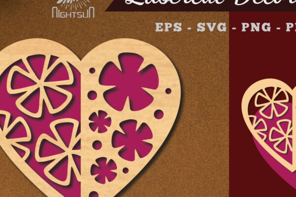 Intra απο ξύλο plywood 3mm-4mm πάχος – Διακόσμηση με κομμένα λέιζερ καρδιών λουλουδιών 3 Δίασταση 20×20 cm INTRAFABR-114138360