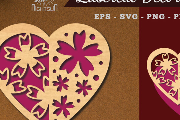 Intra απο ξύλο plywood 3mm-4mm πάχος – Διακόσμηση με κομμένα λέιζερ καρδιών λουλουδιών 6 Δίασταση 20×20 cm INTRAFABR-114138499