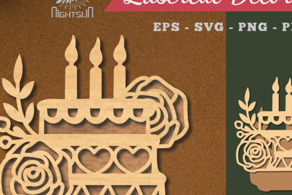 Intra απο ξύλο plywood Χρώμα wenge 3mm-4mm πάχος – Διακόσμηση με κομμένα λέιζερ τούρτα λουλουδιών 2 Δίασταση 20×20 cm INTRAFABR-64955673