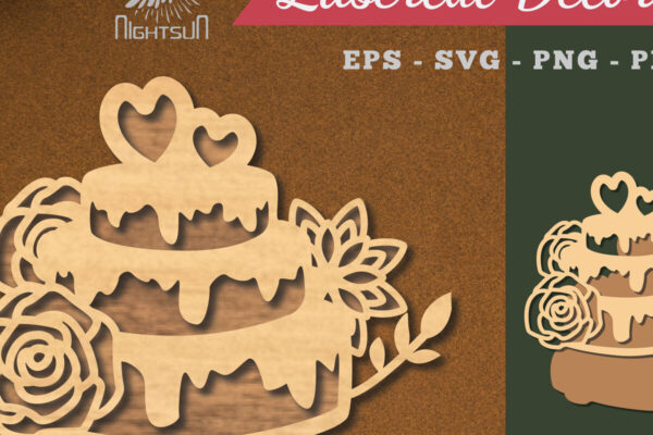 Intra απο ξύλο plywood Χρώμα wenge 3mm-4mm πάχος – Διακόσμηση με κομμένα λέιζερ τούρτα λουλουδιών 5 Δίασταση 20×20 cm INTRAFABR-111092727