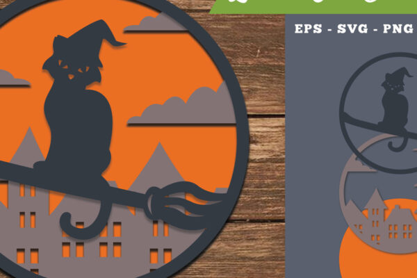 Intra απο ξύλο plywood 3mm-4mm πάχος – Διακόσμηση με λέιζερ αποκριάτικων γατών 4 Δίασταση 20×20 cm INTRAFABR-111314523