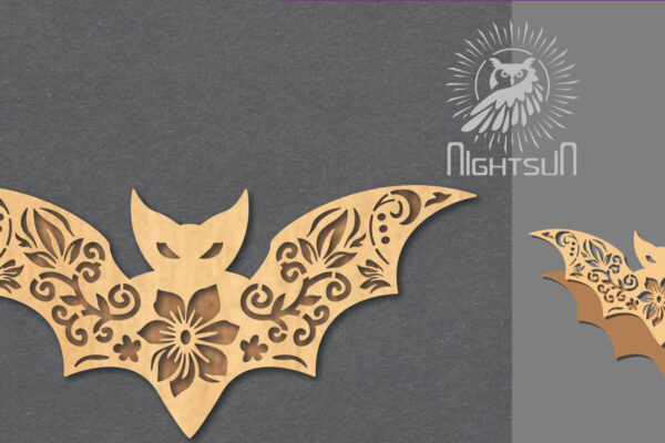 Intra απο ξύλο plywood Χρώμα wenge 3mm-4mm πάχος – Διακόσμηση με λουλουδάτο κομμένο λέιζερ νυχτερίδα 4 Δίασταση 20×20 cm INTRAFABR-115927313