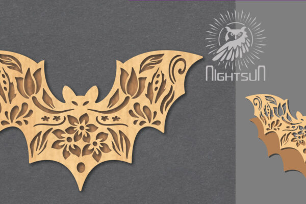 Intra απο ξύλο plywood Χρώμα wenge 3mm-4mm πάχος – Διακόσμηση με λουλουδάτο κομμένο λέιζερ νυχτερίδα 5 Δίασταση 20×20 cm INTRAFABR-116666439