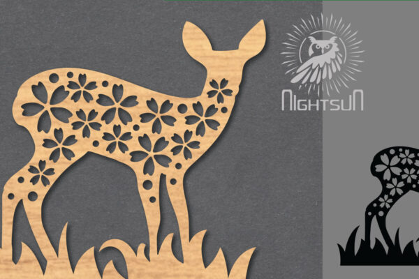 Intra απο ξύλο plywood Χρώμα wenge 3mm-4mm πάχος – Διακόσμηση με λουλούδια ελάφια κοπής με λέιζερ 4 Δίασταση 20×20 cm INTRAFABR-119476778