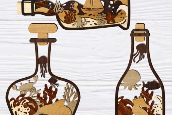 Intra απο ξύλο plywood 3mm-4mm πάχος – Διακόσμηση πολλαπλών στρώσεων δέσμης μπουκαλιών θάλασσας Δίασταση 20×20 cm INTRAFABR-102919777