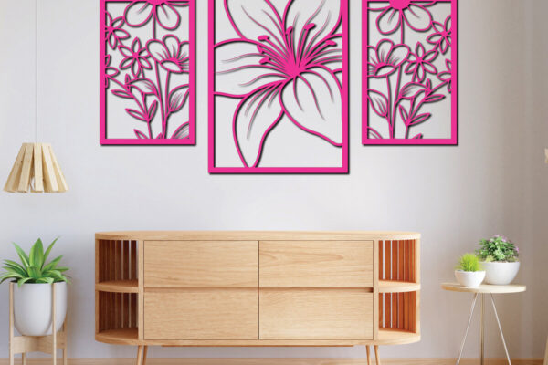 Intra απο ξύλο plywood Χρώμα wenge 3mm-4mm πάχος – Διακόσμηση τοίχου με λουλούδια Πακέτο 3 Δίασταση 30×20 cm INTRAFABR-122014600