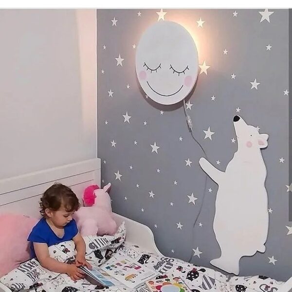 Intra απο ξύλο plywood 3mm-4mm πάχος – Διακόσμηση τοίχου Polar Bear Cute Moon For Baby Nursery Decor Παιδικό ντεκόρ παιδικού δωματίου Δίασταση 30×30 cm Intraeaxys-6o3n8rp1