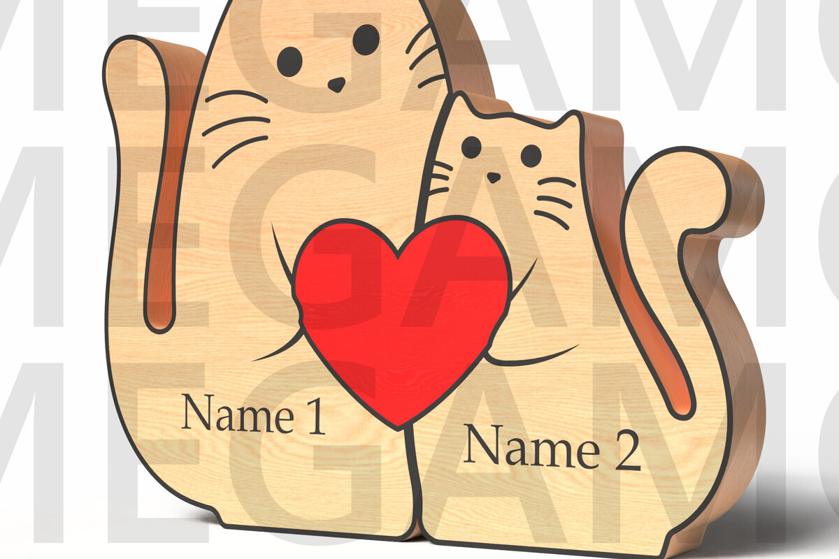 Intra απο ξύλο plywood 3mm-4mm πάχος Διακόσμηση τραπεζιού Cat Couple Δίασταση 15×15 cm INTRAFABR-121637327