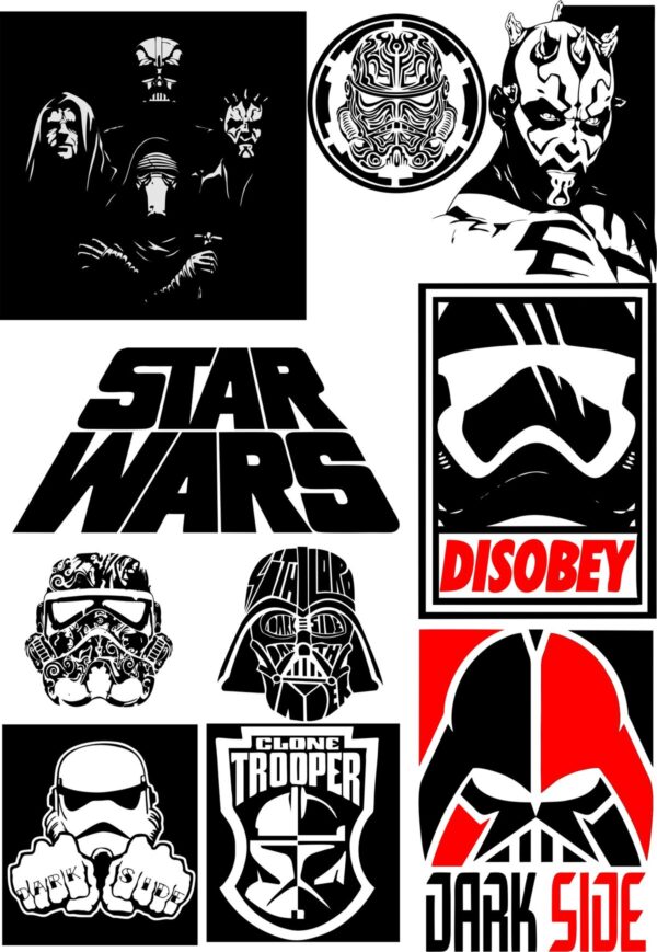 Intra απο ξύλο plywood 3mm-4mm πάχος – Διανυσματικό πακέτο σιλουέτας Star Wars Δίασταση 20×20 cm Intraeaxys-joeqr8o6