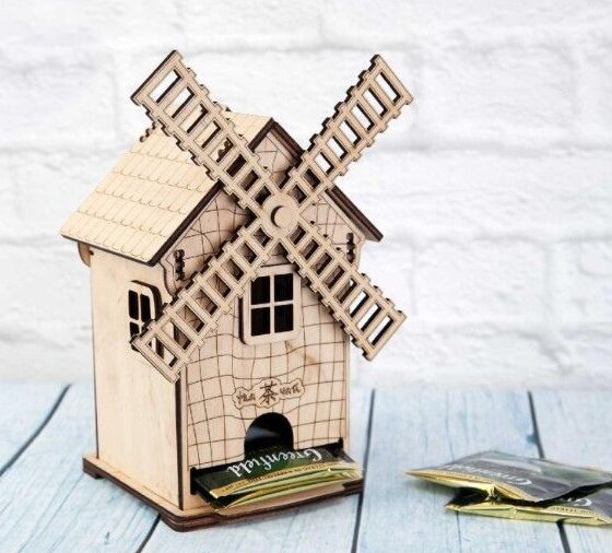 Intra απο ξύλο plywood 3mm-4mm πάχος – Δοχείο τσαγιού Windmill Tea House 20×20 cm INTRAVECTRY-MY557789