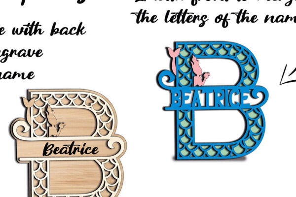 Intra απο ξύλο plywood 3mm-4mm πάχος – Δώρο αλφάβητου λέιζερ MermaLetter B Δίασταση 20×20 cm INTRAFABR-121713342