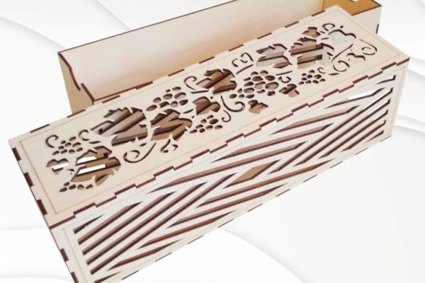 Δώρο Δώρο Κουτί κρασιού Σχεδιασμός Laser Cut. Πρόκειται για ψηφιακό σχεδίου, ιδανικό για κοπή με ή plotter. Κατασκευασμένο απο Ξύλο από plywood [3mm ή 4mm], κομμένο με ακρίβεια στην βιοτεχνία Intrahome . Το φυσικό ξύλο προσφέρει μια κομψή, αυθεντική υφή και μπορεί εύκολα να βαφτεί ή να διακοσμηθεί σύμφωνα με το προσωπικό σας γούστο. Ελληνική παραγωγή – Κατασκευάζεται στην Ελλάδα με προσοχή στη λεπτομέρεια και υψηλές προδιαγραφές ποιότητας. ✔️ Υλικό: Plywood υψηλής ποιότητας ✔️ Διατίθεται σε πάχος 3mm ή 4mm ✔️ Ελαφρύ, ανθεκτικό και εύκολο στη χρήση ✔️ Ιδανικό για βάψιμο, χάραξη, κόλληση και χειροτεχνίες ✔️ Κατάλληλο για μπομπονιέρες, διακόσμηση, δώρα και DIY projects ✅ Εγγύηση 2 ετών – Σε περίπτωση σπασίματος, η αντικατάσταση γίνεται άμεσα, χάρη στην τοπική ελληνική παραγωγή μας. Ιδανικό για δημιουργικούς ανθρώπους που αγαπούν το DIY. Μπορεί να γίνει ξεχωριστό δώρο με προσωπικό χαρακτήρα. Φέρνει “χειροποίητη” αισθητική στη διακόσμηση. -files- Ελληνική χειροποίητη παραγωγή → στηρίζετε τοπικούς δημιουργούς. Κάθε κομμάτι έχει τη δική του φυσική ξύλινη υφή (μοναδικότητα). Δυνατότητα ειδικής παραγγελίας (άλλα μεγέθη / σχήματα). Άμεση ανταπόκριση & υποστήριξη. Εγγύηση αντικατάστασης (ήδη το έχεις). Μπορεί να μετατραπεί σε προσωποποιημένο αντικείμενο με χάραξη ή χρώμα. -files– Μη τοξικό υλικό → ασφαλές για παιδιά (με επίβλεψη). Ελαφρύ και εύκολο στη μεταφορά. Συσκευάζεται με προστασία για να φτάνει πάντα άθικτο. -files–files- Ιδανικό για event planners, καταστήματα ειδών δώρου, κατασκευαστές . Διατίθεται σε χονδρική με ειδικές τιμές & εκπτώσεις σε ποσότητα. Ανοιχτές Αποχρώσεις