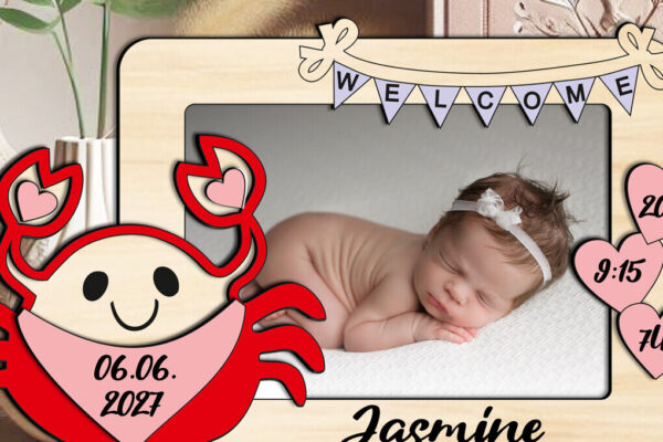 Intra απο ξύλο plywood 3mm-4mm πάχος – Δώρο κορνίζας για μωρό Crab Laser Δίασταση 20×20 cm INTRAFABR-123794893