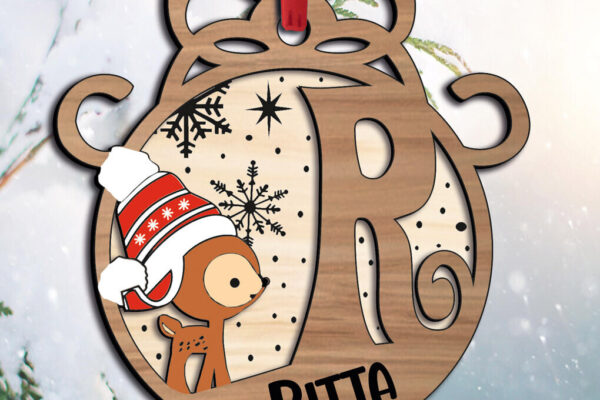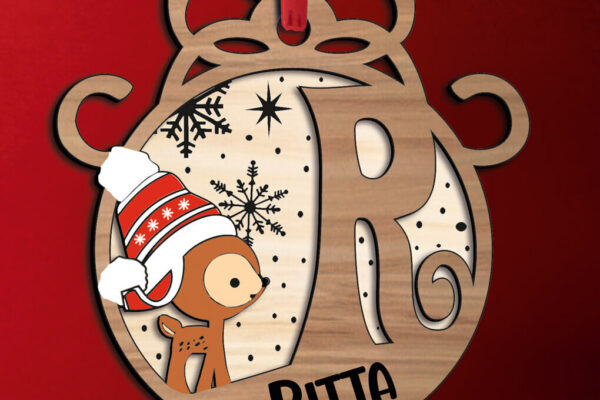 Intra απο ξύλο plywood 3mm-4mm πάχος – Ελάφια γιορτινό γράμμα R Χριστουγεννιάτικο στολίδι Δίασταση 6×6 cm INTRAFABR-109773978