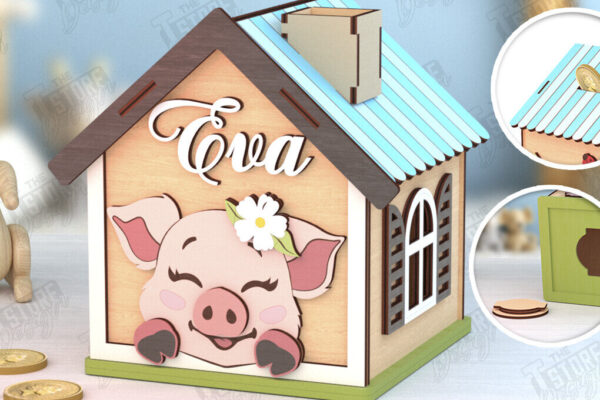 Intra απο ξύλο plywood 3mm-4mm πάχος – Εξατομικευμένη Piggy Bank | Χοίρος Δίασταση 20×20 cm INTRAFABR-120841447