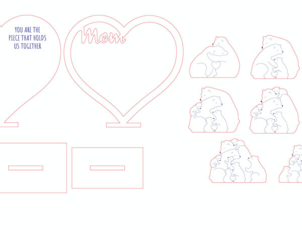 Intra απο ξύλο plywood 3mm-4mm πάχος – Εξατομικευμένο Floral Bear Family Δίασταση 20×20 cm INTRAFABR-117970641